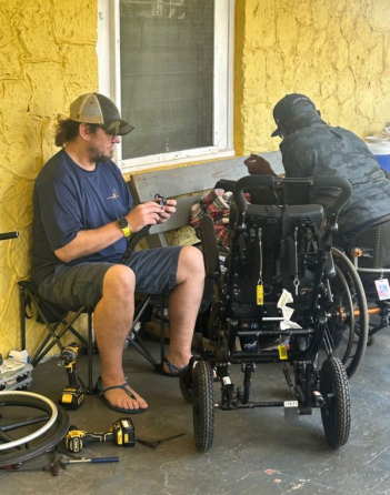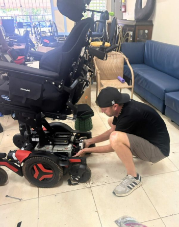 Back home, the team matches each resident with the most suitable wheelchair available, sourcing chairs from manufacturers, donations, or gently used chairs. Volunteers rebuild and modify the wheelchairs, installing custom seating systems and labeling each chair with the resident’s name and evaluation details. Every chair is carefully checked for safety and quality before being packed for shipment.