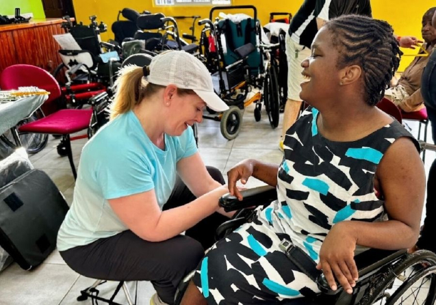 When the containers arrive in Jamaica, the team hits the ground running. Wheelchairs are sorted by resident and home, and fittings begin. Each fitting session ensures the chair supports the resident as intended, with adjustments made as needed—a process that can take anywhere from 30 minutes to more than two hours depending on complexity. Residents and caregivers are trained to safely and effectively use and maintain the equipment, recognizing that each wheelchair is as unique as the individual who uses it.