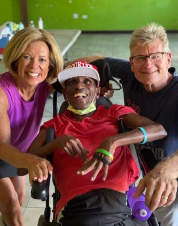 By 2005, Liz began developing a vision of bringing custom wheelchairs to Jamaica. Embarking on a journey of education and advocacy, Liz led many mission trips, connecting even more strongly with the residents—especially Claude!—each time. By 2012, she and a dedicated team of volunteers were fundraising to send donated wheelchairs, each one customized to meet the needs of individual residents once it arrived in Jamaica.