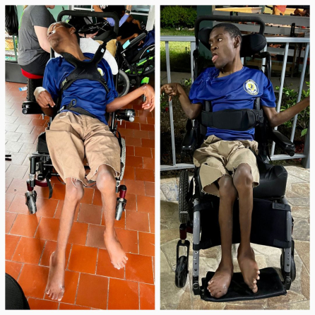 Opal Bailey, Caring Resource Manager for MSC Jamaica, has observed significant improvements in residents’ health and well-being since the introduction of customized wheelchairs. She states, “The children and adults in Mustard Seed’s care have benefited in many ways from personalized, retrofitted wheelchairs. These chairs help prevent contractures and scoliosis, support proper positioning during feeding to reduce the risk of aspiration, and minimize long-term complications that can result from improper seating.”
