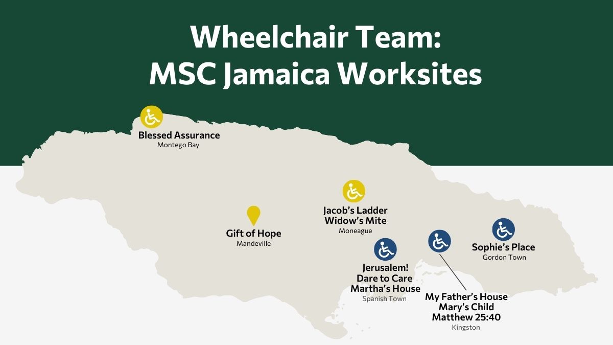 - 90% of MSC Jamaica residents need wheelchairs, and a dedicated volunteer team from Atlanta ensures each resident has a custom chair, boosting independence and full participation in daily life.